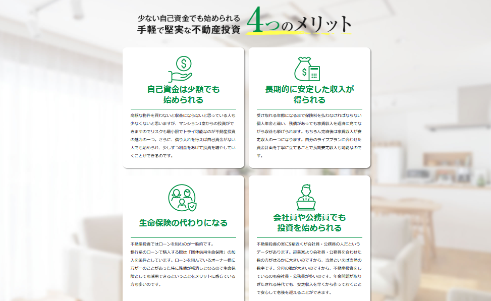 また、専門知識を持つスタッフが対応するため、難しい用語や仕組みについても丁寧に説明してもらえます。不動産投資に不安を感じている方でも、理解を深めながら進められる点が魅力です。